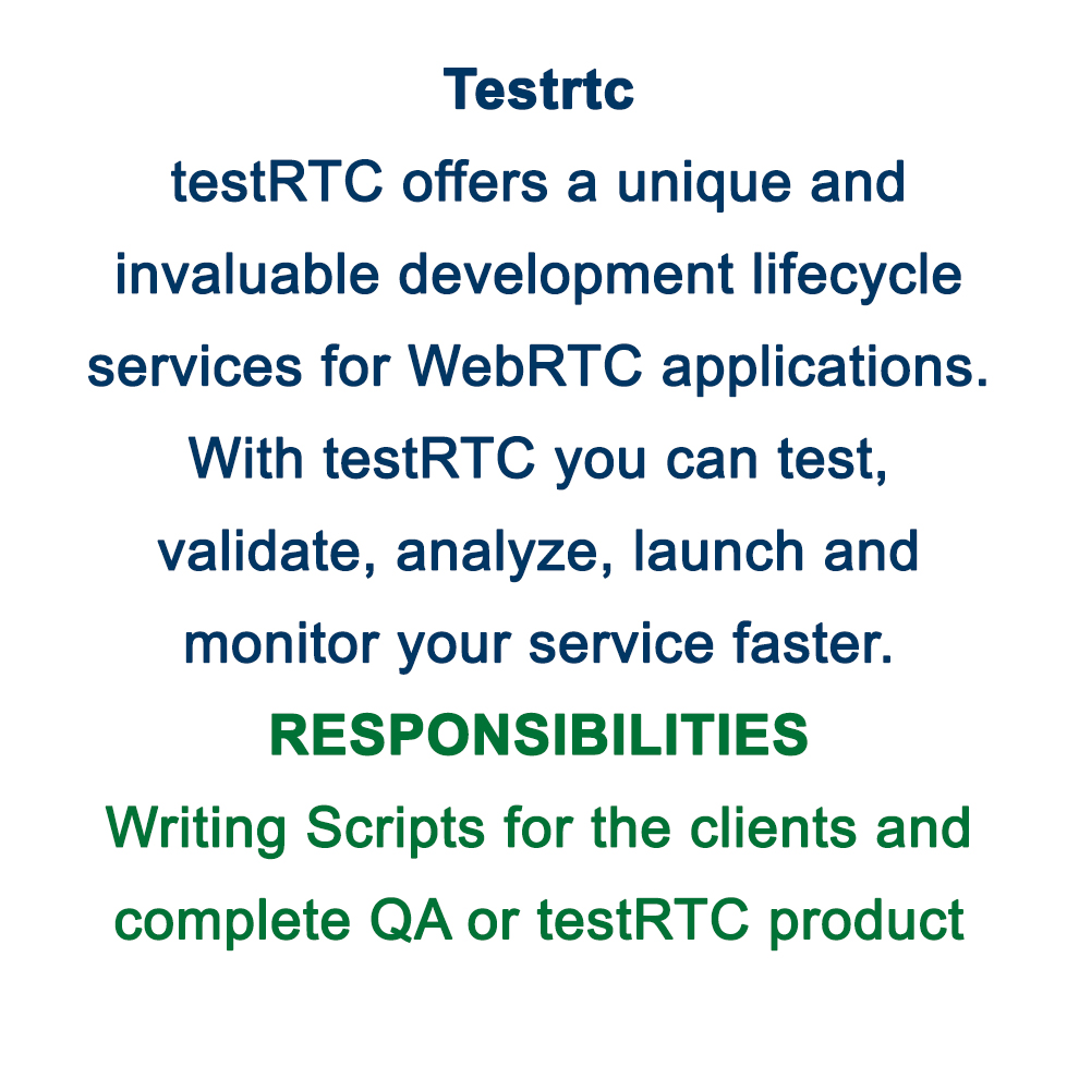 We provide innovative software testing solutions. From manual testing to custom automated test environments. We have the experience and resources to provide you best-in-class quality.Applying best practices, our experience and confidence in the work.Capability to learn and having multiple domain knowledge.
